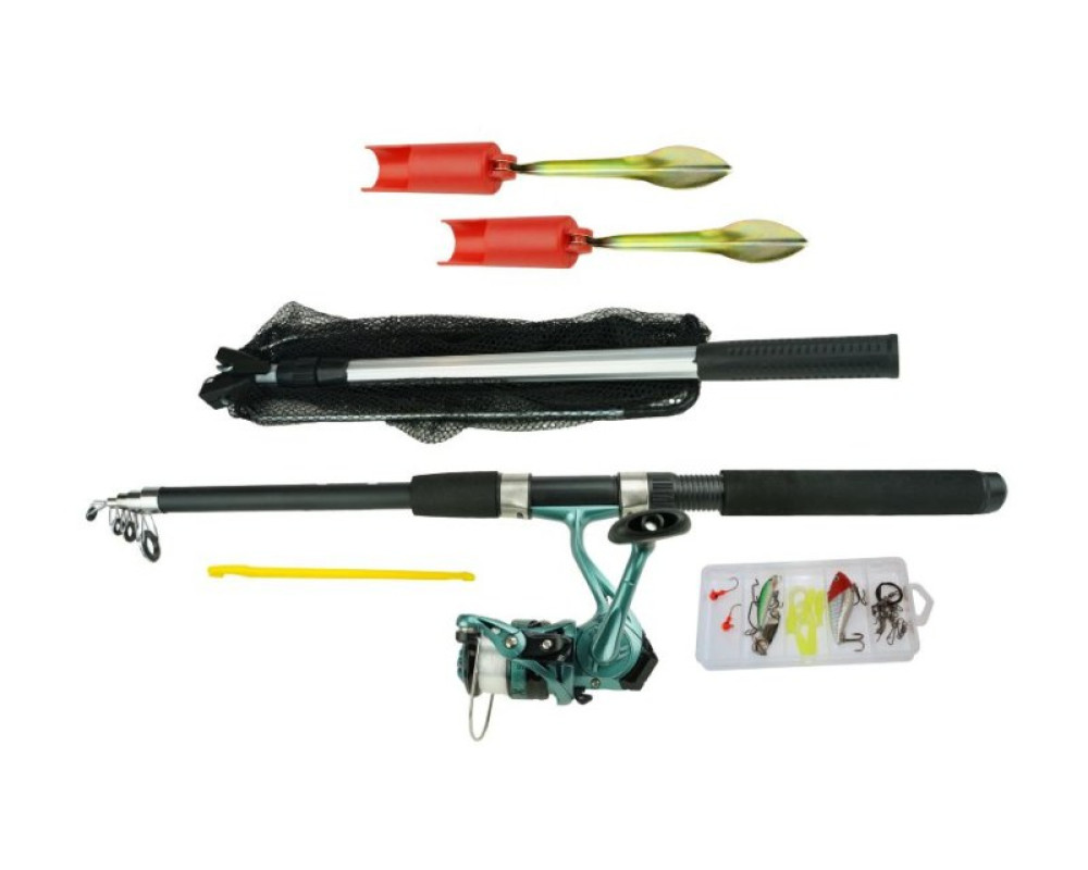SET udice 2,10m+naviják+podběrák+držáky+nástrahy