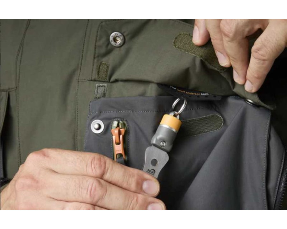 • 7+8 Přední šikmé kapsy (na zip) V závislosti na preferencích máte přístup k této kapse shora nebo zboku. Design naznačuje, že horní přístup použijete pro přípravu nářadí, magnetů a podobně. Sáček je dále přístupný z boku při rybolovu. Horní část kapsy je vybavena knoflíky z jednoho důležitého důvodu - lze je snadno opravit/vyměnit. Také knoflíky nabízejí nejbezpečnější „zámek“ na kapse, která se nemusí často otevírat a zavírat. Pokud vložíte náš magnet WizTool (položka 3552 4 kg) do speciálně navrženého držáku, bude dostatečně pevný na to, aby „zachytil“ a připevnil váš nástroj WizTool přes tkaninu uvnitř i vně této kapsy. Tento typ sáčku umístěného zvenčí si oblíbí mnozí jako na ruce ohřívač. Optimalizovali jsme schopnost sáčku co nejvíce odpuzovat déšť, vlny atd., ale funkce této sáčku nejsou kompatibilní s vysokým stupněm vodotěsnosti. Rychle se vypouští.