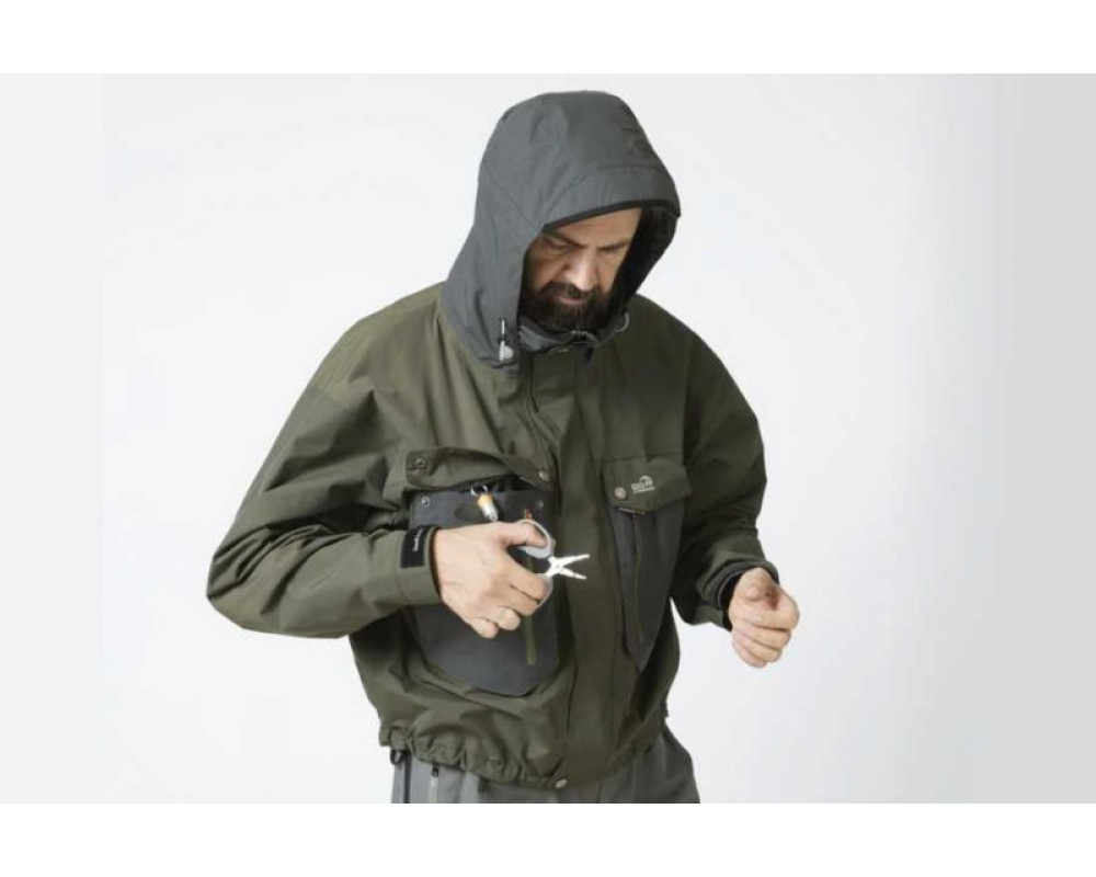 Rybářská nepromokavá bunda WS Light zelená - podrobný popis kapes: