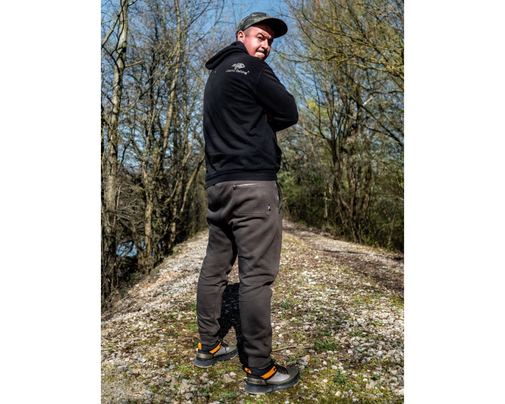 Skvěle padnoucí a pohodlné tepláky, které ocení nejen rybáři. Vyrobeno z materiálu o gramáži 280gsm, která je kombinován z 60% polyester a 40% bavlna. Polyester zajistí lehkost a komfort, zatímco bavlna se postará o prodyšnost a má izolační schopnost. Vrchní lem je elastický a lze ho ještě dotáhnout šňůrkou. Obě boční, tak i zadní kapsa jsou opatřeny zipy, což zabrání nechtěné ztrátě jejich obsahu. V nabídce jsou tyto velikosti: S, M, L, XL, 2XL a 3XL. Barva: khaki zelená
