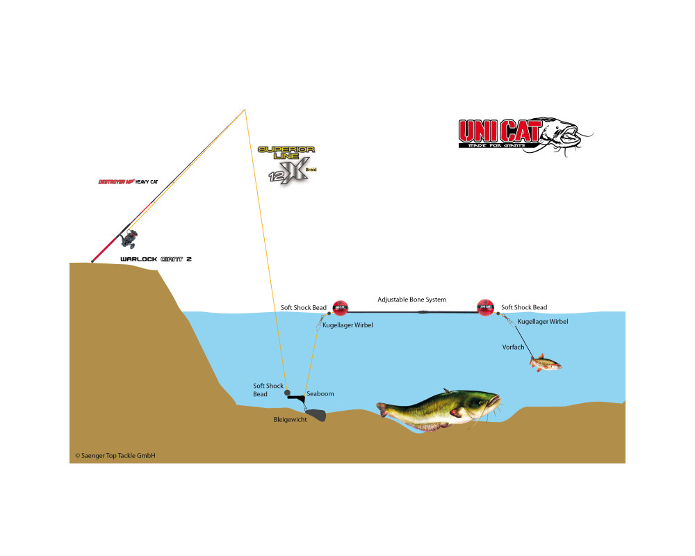 Nastavitelný bójkový systém Bone System představuje jednoduchý a mimořádně úspěšný způsob lovu sumců ze břehu. Tento systém funguje jako plovák a současně jako flexibilní, prodloužitelné rameno, které umožňuje nástražní rybě plavat přirozeně a realisticky. Po upevnění nástrahy je montáž připravena k nahození nebo může být přesunuta na lovné místo pomocí techniky dvou prutů.