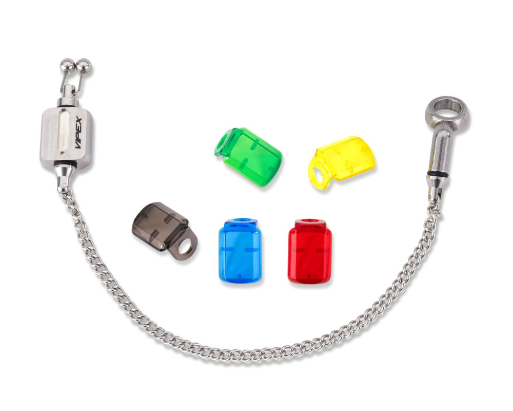 Řetízkový signalizátor záběru Vipex byl speciálně vyroben výhradně z nerezové oceli, takže jej lze použít za každého počasí. Pomocí pěti barevných panelů, které jsou součástí balení, si můžete sami vybrat, jakou bude mít indikátor barvu.