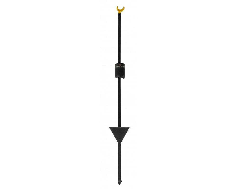 Celokovový sumcový držák prutů s jednoduchým tělem. Délka držáku je 950 mm, délka kalichu 75 mm a průměr kalichu 50 mm. Nášlapný kovový trojúhelník pro maximální stabilitu držáku a jednodušší zapichování. Vysoce kvalitní povrchová úprava práškovou komaxitovou vypalovací barvou.