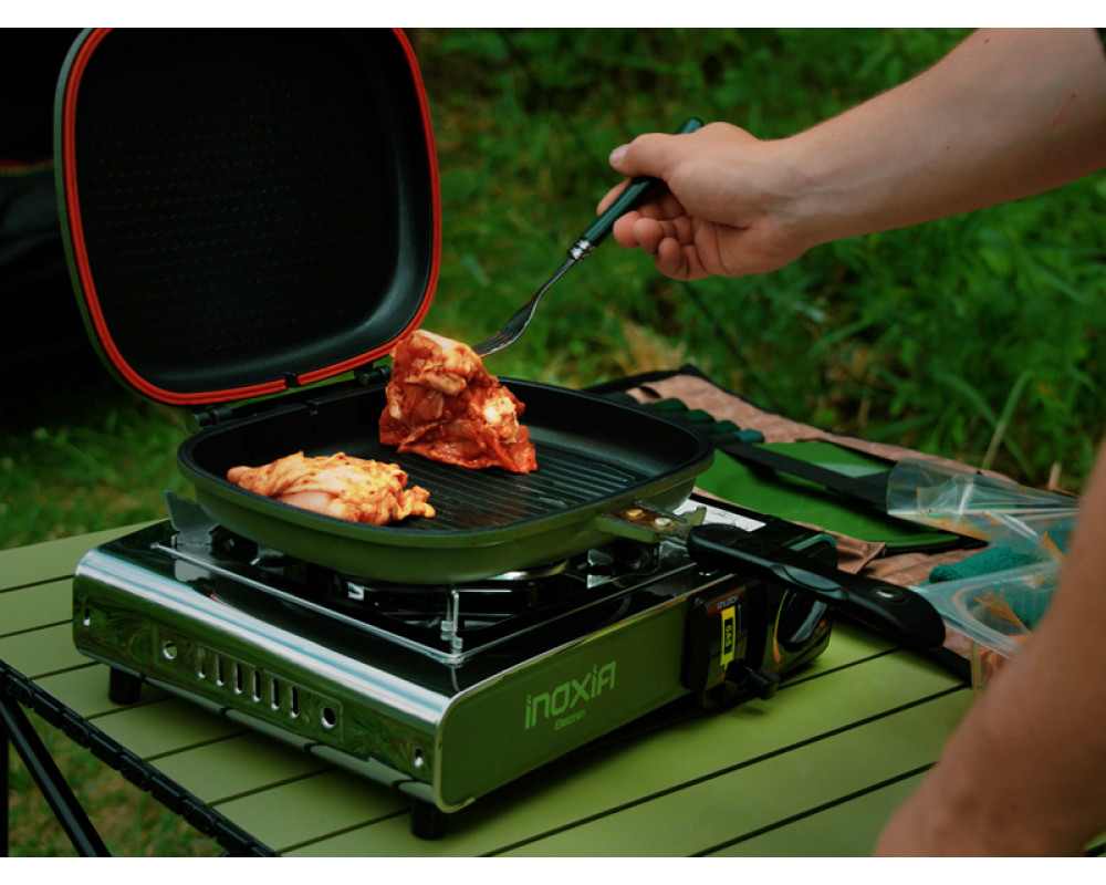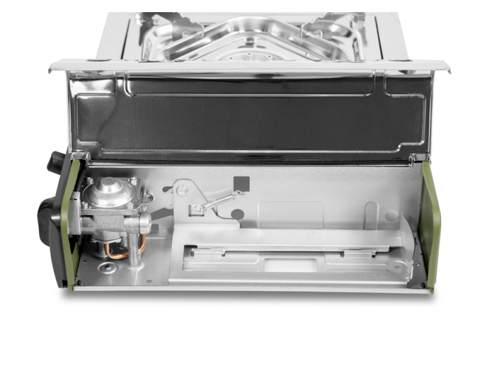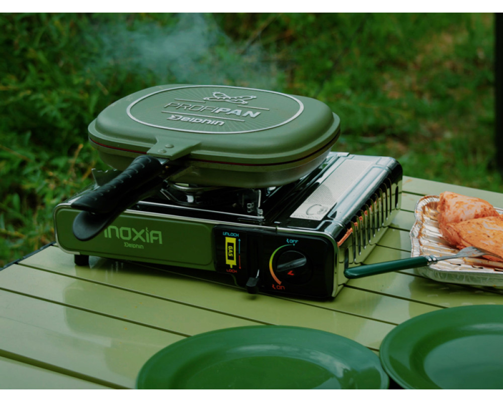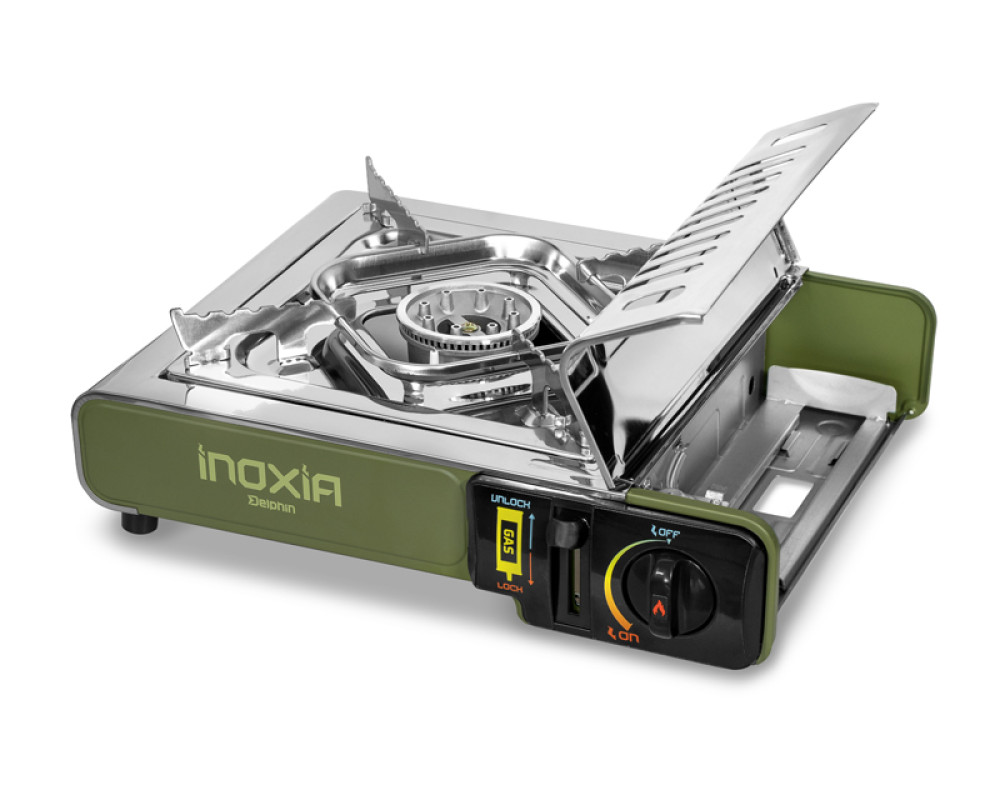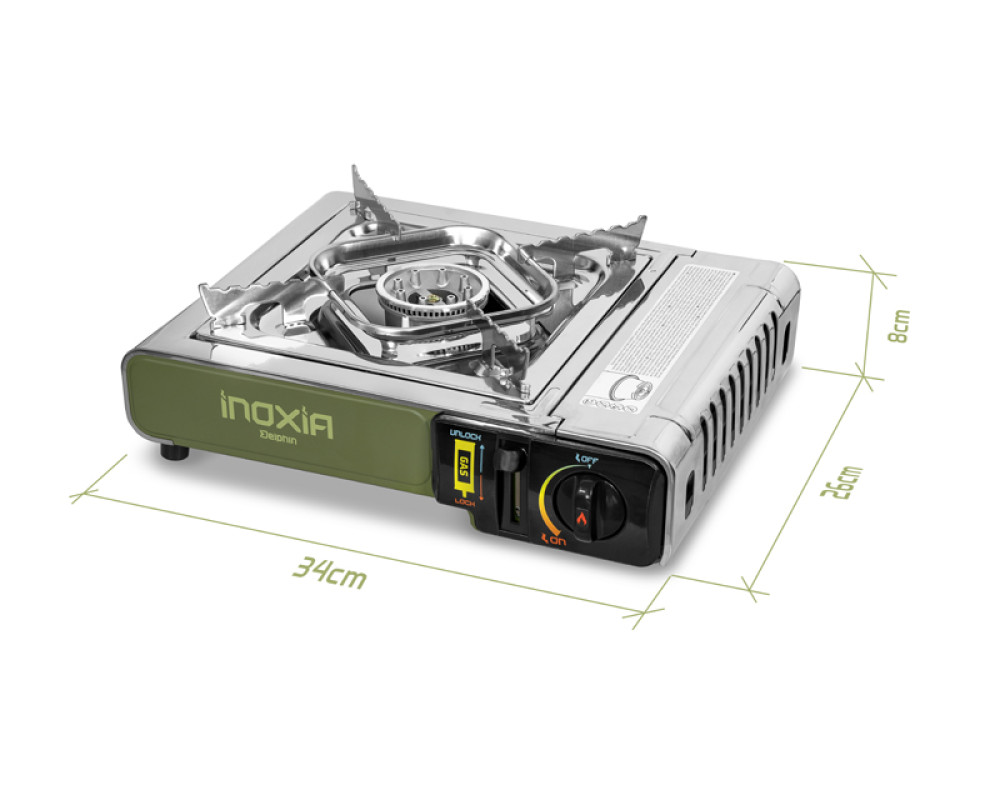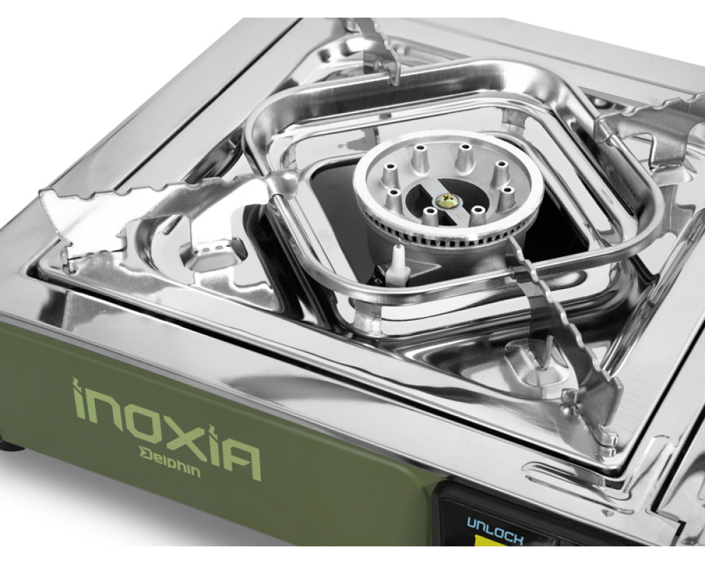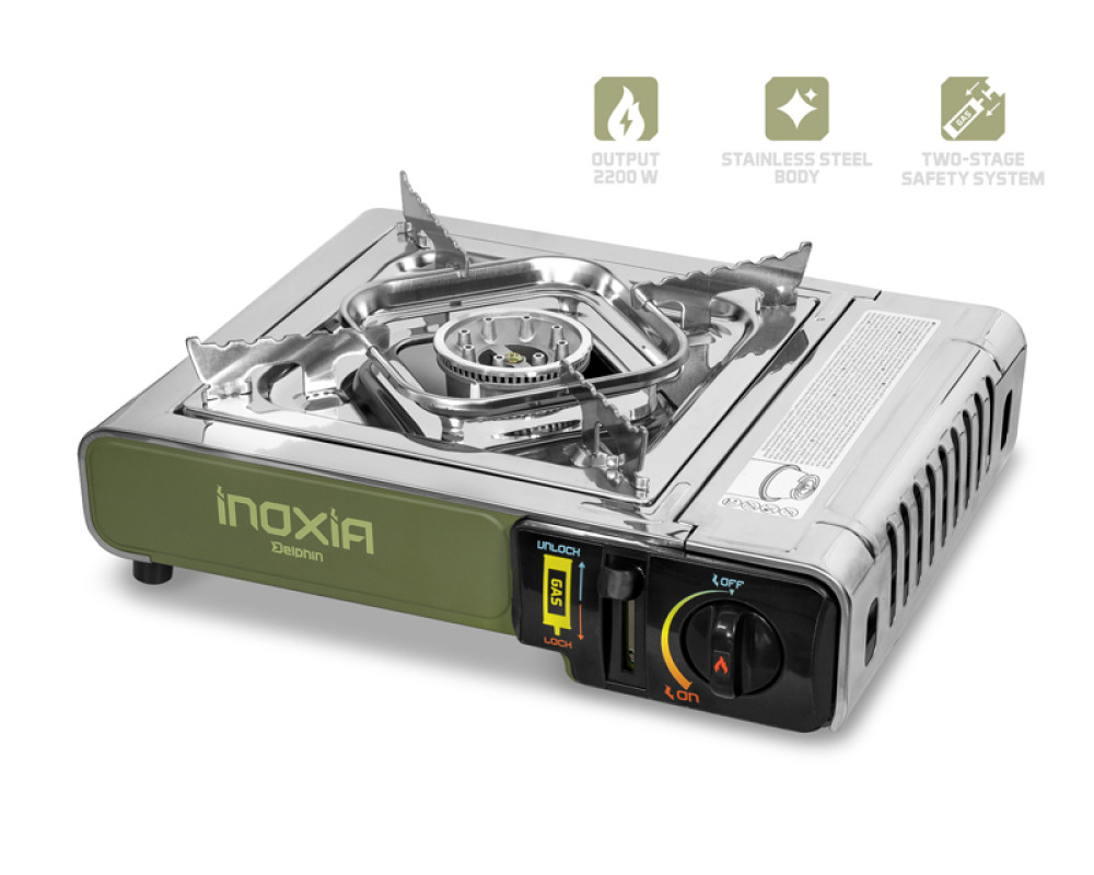 Výkonný a stabilní plynový vařič o výkonu až 2000 W, se kterým si připravíte chutné jídlo kdekoli v přírodě – stejně pohodlně jako doma. Jedná se o mimořádně stabilní model postavený na čtyřech nožkách, který spolehlivě poslouží, ať už jej položíte na stůl nebo na zem. Díky odolnému roštu s dostatečnými rozměry můžete bez obav vařit i ve větším hrnci či pánvi. Aby se předešlo opotřebení při vysokých teplotách, rošt i samotné tělo vařiče jsou vyrobeny z nerezavějící oceli, která se navíc velmi snadno čistí. Výřezy na roštu spolehlivě zabraňují nechtěnému uklouznutí nádobí během míchání. Vařič je napájen propan-butanovými kartušemi typu CP250 o objemu 400 ml. Disponuje tzv. two-stage safety systémem, díky kterému je používání maximálně bezpečné. Pro zapálení plamene je nejprve třeba kartuši zafixovat pomocí páčky na přední straně vařiče. Tím se výrazně snižuje riziko nechtěného úniku plynu nebo jeho samovolného uvolnění. Pro maximálně snadnou manipulaci je Delphin INOXIA vybaven otočným regulátorem, který slouží k přesnému nastavení průtoku plynu. Díky piezoelektrickému zapalování, kterým vařič disponuje, můžete zapomenout na zápalky či zapalovač – oheň si rozžnete jednoduše otočením kolečka na maximum. Vařič je navíc v základu dodáván v praktickém plastovém kufříku s rukojetí pro pohodlný transport. Díky kompaktnímu tvaru je snadno skladovatelný a vždy připravený na další výpravu. Technické parametry: Výkon: 2000 W Typ kartuše: CP250 (400 ml) Palivo: Propan - butan Zapalování: Piezoelektrické Hmotnost vařiče: 1375g Rozměry: 34x26x8cm Transportní rozměry: 36x30x12cm