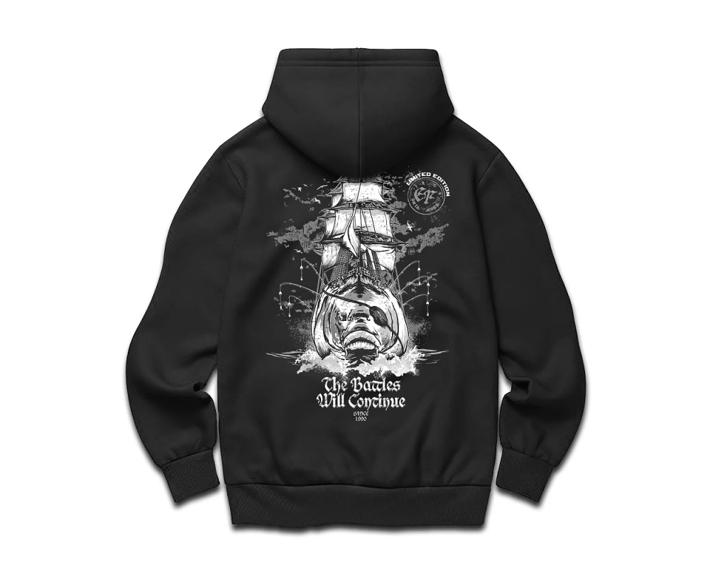 Mikina „The Battles Will Continue“ – Je určená pro skutečné lovce legend! Tato exkluzivní mikina je určená pro rybaře, kteří vědí, že skutečné souboje se odehrávají při vodě – při zdolávání těch největších kaprů!