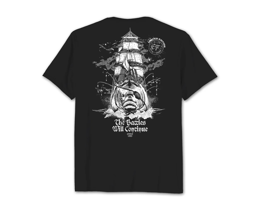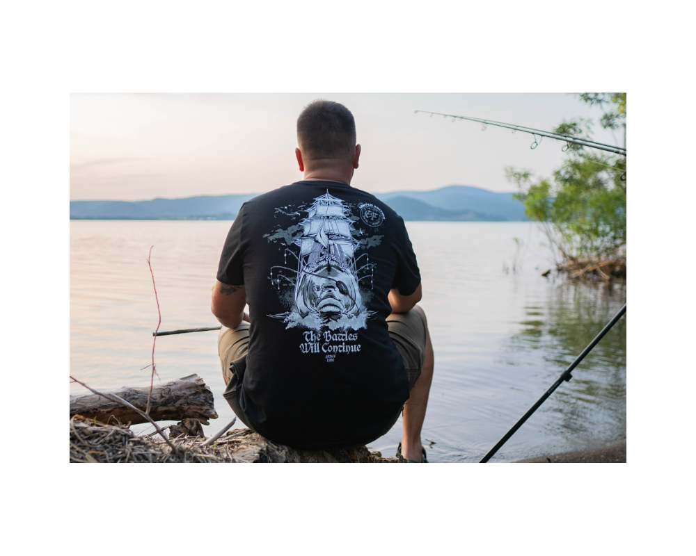 Tričko „The Battles Will Continue“ – Je určená pro skutečné lovce legend! Toto exkluzivní tričko je určená pro rybaře, kteří vědí, že skutečné souboje se odehrávají při vodě – při zdolávání těch největších kaprů!