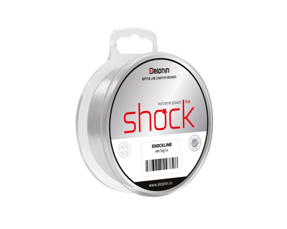 Šokový vlasec od slovenské značky Delphin, který se používá jako koncový návazec. Dovoluje nahazování nástrah bez jakékoli obavy před odtržení během krátkodobého přetížení. Model SHOCK LINE je postaven na oděruvzdorném jádru. Je několikanásobně odolnější vůči oděru oproti standardním nylonovým vlascům. Výborně se proto hodí do vod, které jsou plné mušlí, ostrých kamenů apod. Použitý materiál CPA 6.6 je garancí nejnižšího součinitele tření, což výrazně zvyšuje jeho oděruvzdornost oproti běžnému materiálu na výrobu vlasců – PA 6. Z tohoto důvodu SHOCK LINE neobsahuje žádné povrchové oděruvzdorné vrstvy, jejichž aplikace a proces nanášení výrazně snižují nosnost vlasce.