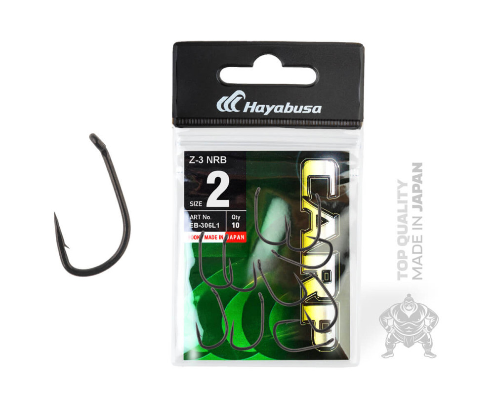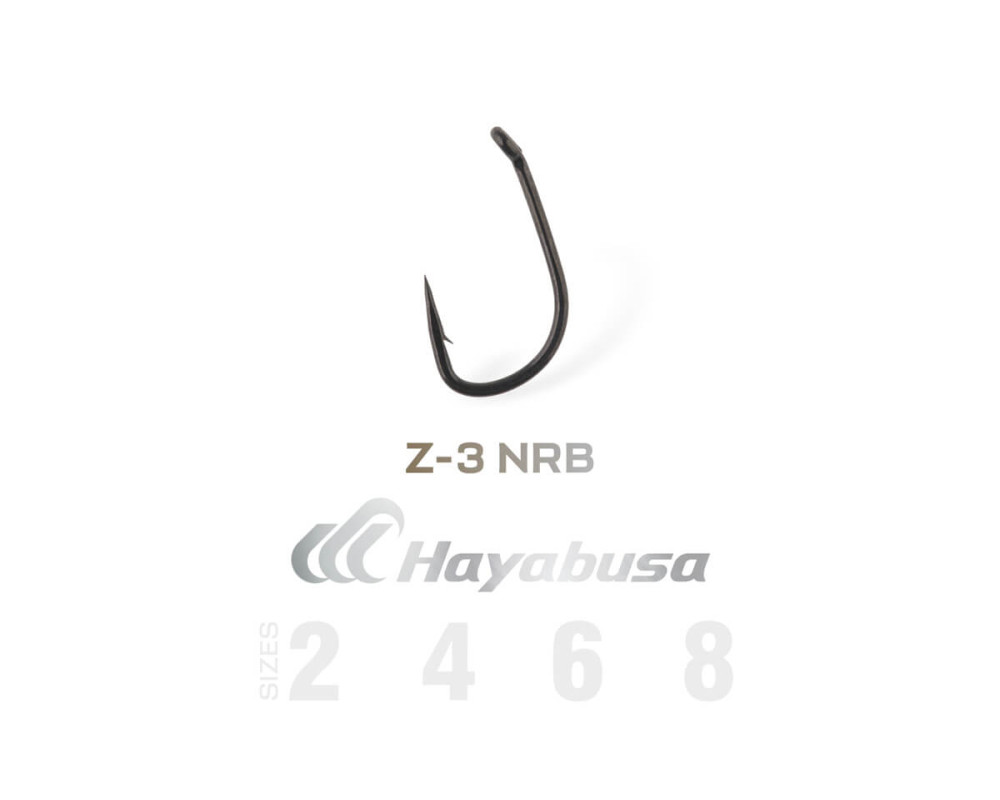 Haybusa Z-3, široké ramínko a mírný náklon očka háčku zajišťují, že háček vždy zasekne. Silný a tvrdý drát zabraňuje tomu, aby i malé háčky při záběru trofejního kapra nebo amura selhaly. Jsou vhodné jak pro klasické kaprové montáže, tak i pro moderní prezentace nástrah.