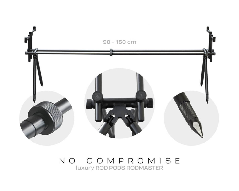Díky precizně zpracované konstrukci nabízí RodMaster výjimečnou stabilitu i při prudkých záběrech, silném větru nebo nerovném břehu. Dvojitá středová tyč umožňuje široké nastavení délky a spolu s teleskopickými nohami poskytuje maximální flexibilitu při použití na různých typech břehů. Velkou předností jsou hrazdy vybavené maticemi, které umožňují pevné zajištění hlásičů a rohatinek bez nežádoucího povolování. Nohy s vyladěným aretačním systémem, jenž zaručuje, že zvolená délka zůstane pevně fixována i při dlouhodobém zatížení.