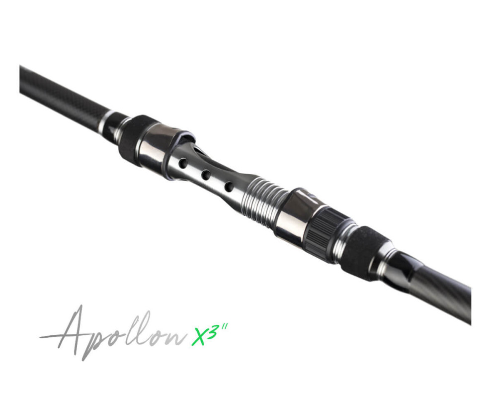 Apollon X3 je speciálně stavěný prut, který díky použitému carbonu 24T kombinuje skutečně daleké náhozy s velmi příjemným zdoláváním. Elegantní 12-ti stopý prut s tenkým blankem je navržen a přizpůsoben tak, aby splňoval požadavky i těch nejnáročnějších rybářů. Takzvaná "K" očka zabraňují omotání smyčkou vlasce nebo šňůry kolem očka při náhozu. Hlavními atributy, na které jsme kladli důraz jsou lehkost prutu vs. odolnost v náhozu vs. ideální délka a zpracování rukojeti, která je vhodná i pro nižší postavu. Apollon X3 disponuje také prodlouženým a zesíleným trnem, který umocňuje náhozy v ideální gramáži 80 – 100g, Apollon však hravě zvládne i těžší. Kvalitní a speciálně zpracované vodící očko o průměru 40 mm a koncové očko 12 mm, jsou samozřejmostí.