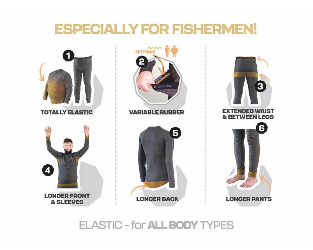Materiál je měkký, příjemný na dotek a dostatečně prodyšný, takže se pohodlně nosí i po delší dobu. Díky pružnému provedení se termoprádlo dobře přizpůsobí postavě, neomezuje v pohybu a umožňuje soustředit se plně na rybaření bez nepříjemného chladu.