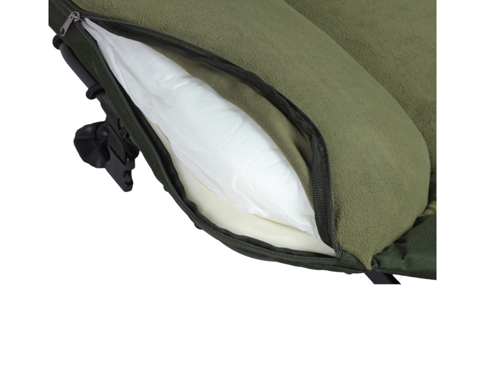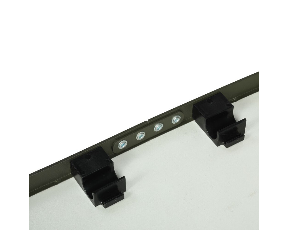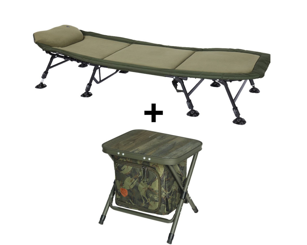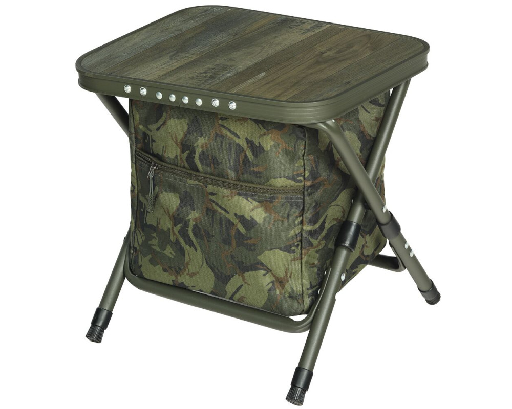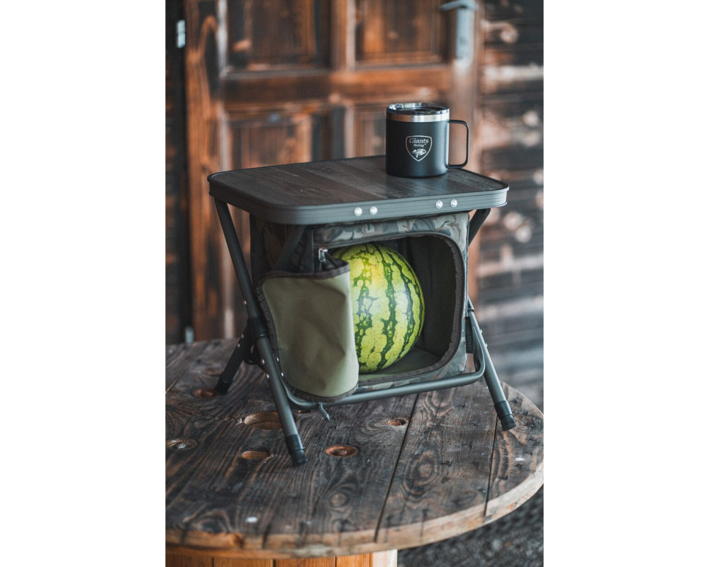 Na lehátku byla použitá pevná ocelová konstrukce a silné polstrování v kombinaci tkaniny a hřejivého polar fleece. Ve střední části naleznete výztuhu, která je propletená elastickým lankem a díky ní si můžete nastavit požadovanou tuhost. Pod hlavou je měkký polštář, který lze jednoduše vyjmout. Specifikace: - 100% ploché provedení celého lehátka - Polstrování v kombinaci zelené tkaniny a polar fleece - Ocelová konstrukce o průměru 22 a 25mm - Čtyři výškově nastavitelné nohy - Velké pacičky proti zaboření do bláta - Rozměry: 210 x 80 x 30/37 cm -Nosnost do: 150 kg - Váha: 11,5 kg Praktický skládací stolek s integrovanou taškou na uložení různých věcí, který se skvěle hodí do vašeho bivaku či brolly. spodní části tašky a díky tomu ho máte vždy připravený k zabalení. Konstrukce je vyrobena z hliníkových trubek o průměru 19 a 20mm. Textilní část je vyrobená z nepromokavé polyesterové tkaniny, která je v decentním kamuflážovém vzoru. Rozměry: 40x33,5x41cm Hmotnost: 1,96 kg Odkaz na video: http://www.youtube.com/watch?v=YzX4qPk47SE