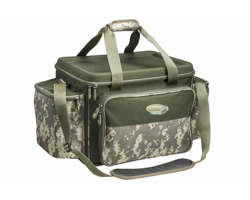 Precízne spracovaná prepravná taška v atraktívnom dizajne digitálneho maskáča s priestrannými bočnými vreckami. Tvrdené veko slúži ako stolík na drobné príslušenstvo. Luxusne polstrovaný popruh umožňuje pohodlné nosenie cez rameno. Perfektný spoločník na každú rybačku!
