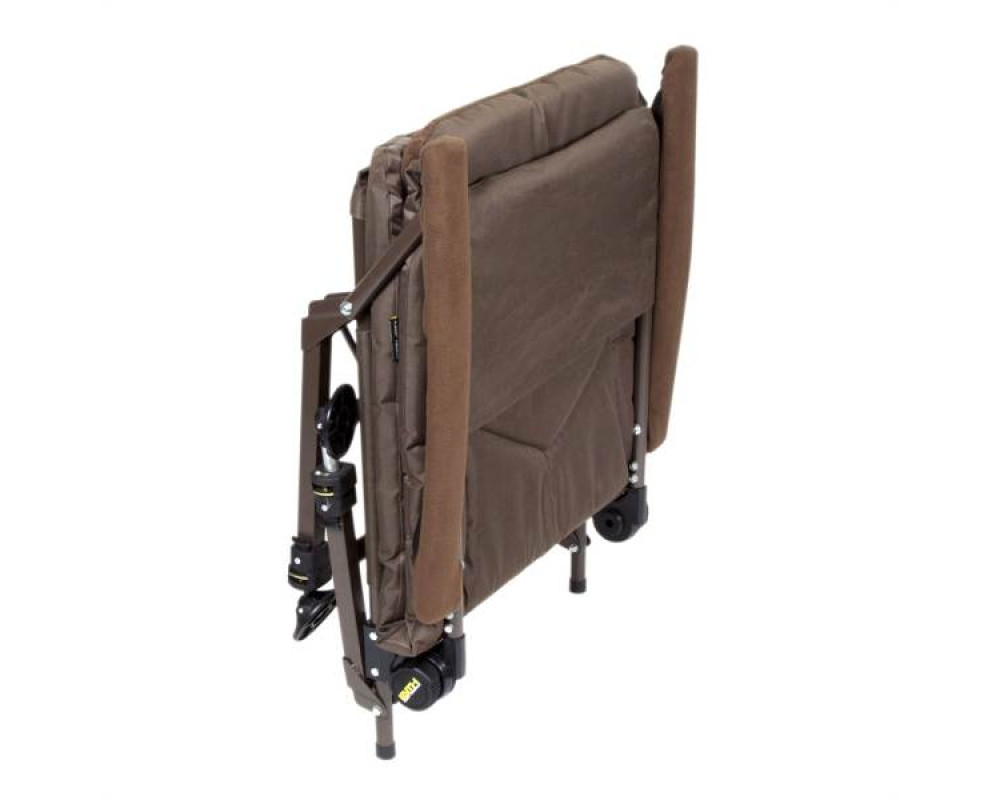 Nastavitelné křeslo s vysokým opěradlem a područkami. Nastavitelné a otočné bahenní nohy. Křeslo je vyrobeno z lehkého ale silného odlehčeného kovového rámu. Možnost nastavení opěradla do libovolné polohy zaručí maximální pohodlí pro každého. Flísové područky jsou snadno odnímatelné a dají se prát. S hmotností 7,26 a transportním rozměrům 68 x 23 x 85cm se křeslo stane vaším oblíbeným společníkem na rybách nebo kempu.