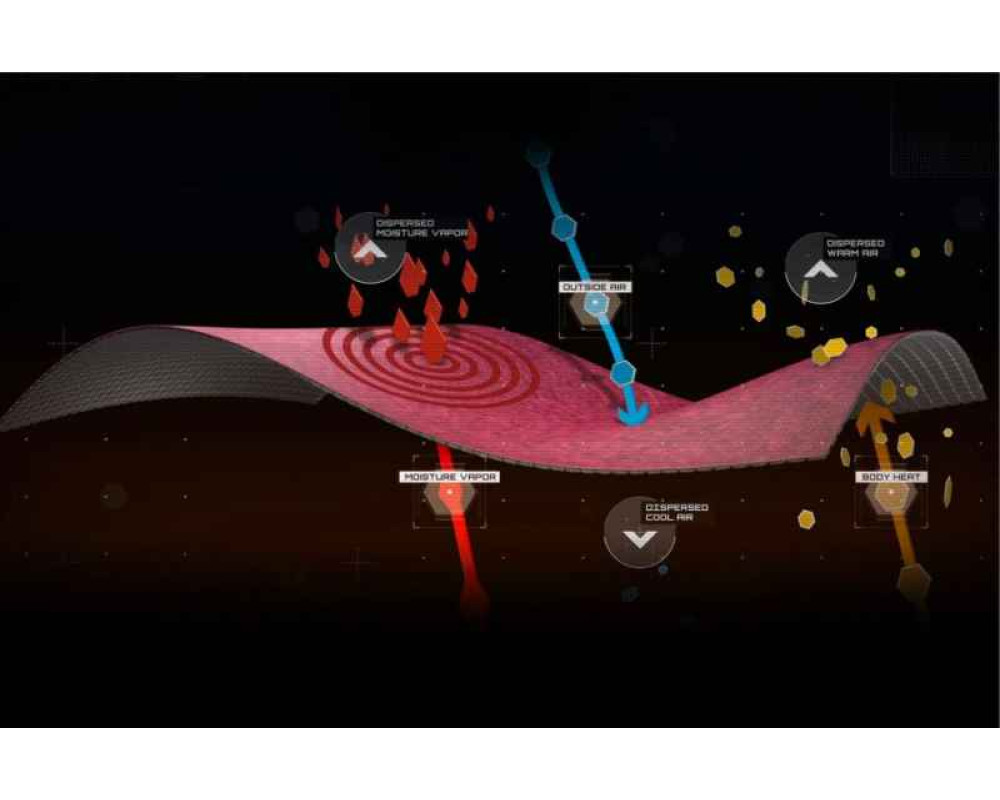 Polartec Powergrid: Geometrická konstrukce generující cílené dotykové body s patentovaným dvousložkovým designem. Povrch absorbuje potní páry a odvádí je rychle z pokožky, díky čemuž zůstáváte stále v suchu a teple. Design mřížky také vytváří otevřené vzduchové kanálky, které dramaticky zlepšují prodyšnost.