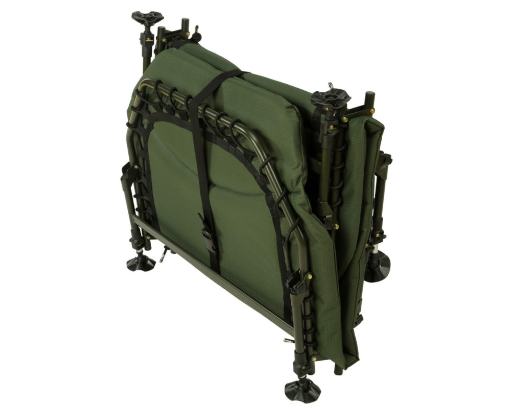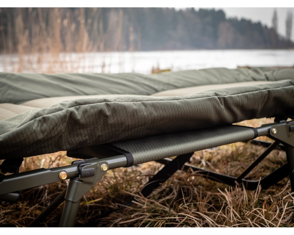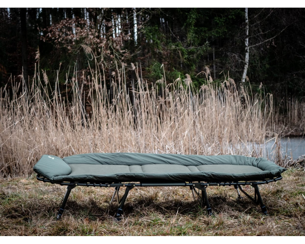 Na toto lehátko byly použité kvalitní materiály, díky svému elegantnímu a přitom decentnímu designu kombinace dvou tónu zelené barvy, zaujme každého rybáře. Snažily jsme se vyrobit maximálně pohodlné lehátko, které bude prostorné v XL provedení za velmi rozumnou cenu! Polstrování matrace má termo izolační vlastnosti a chrání Vás před chladem, vlhkem v kombinaci s fleecovou středovou částí. - lehátko je vybaveno osmi volně nastavitelnými nohami (lze je prodloužit) - každá noha je vybavena otočnou pacičkou zabraňující zaboření do bláta - zesílená středová část, která je zároveň propletena pružnými gumovými lany - popruh s přezkou pro stažení a zajištění pro snadný transport Rozměry: Celkové rozměry: 209cm x 90cm Výška lehátka: 33 až 46cm Celková váha: 9,8kg Nosnost do: 150kg