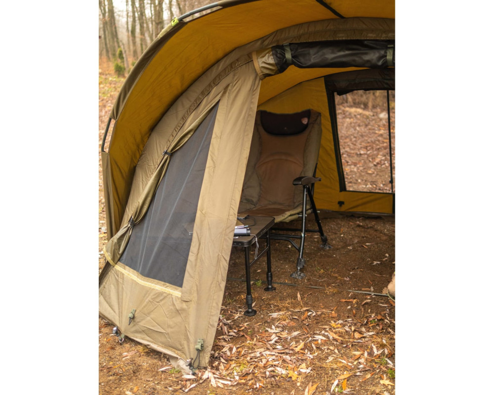 Velmi propracovaný bivak, který byl pečlivě vyvíjen s ohledem na maximální komfort u vody. Velký důraz, byl kladen na maximální odvětrání bivaku, které je velmi důležité v horkých letních měsících.