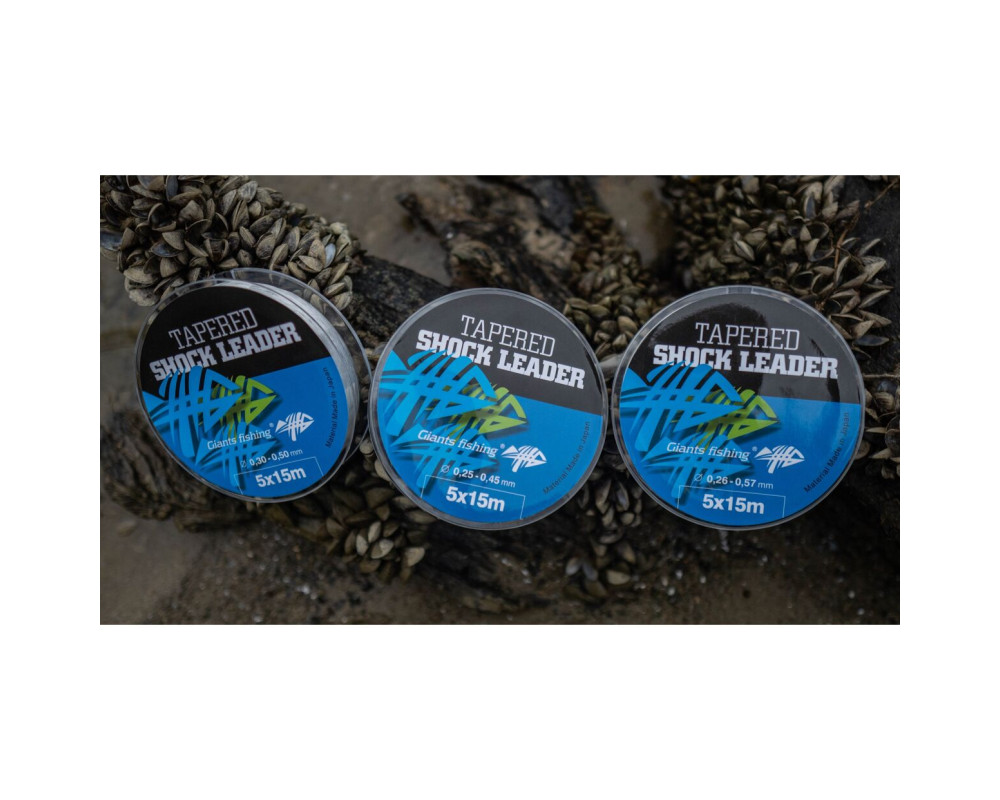 Giants fishing Ujímaný šokový vlasec Tapered Shock Leader 5 x 15 m / 0,26 - 0,57 mm
