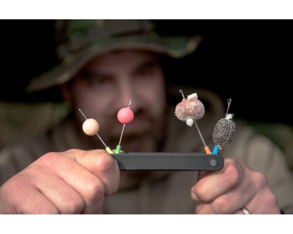 Nářadí, vše v jednom, ušetří místo a zároveň přispěje k okamžitému použití konkrétní jehly nebo vrtáčku. Sada obsahuje tři základní jehly a jeden vrtáček. Jednotlivé hlavice jsou lehce vyměnitelné a mohou tak sloužit opětovně, pokud dojde k jejich poškození či zlomení. Nářadí obsahuje: - jehlu na boilie Boilie needle - jehla Fine latch needle se štíhlým profilem pro výměnu nástrahy - jehla Heavy Latch needle - vrtáček - stahovač šnůr Stripper tool - dotahovač uzlů Puller tool