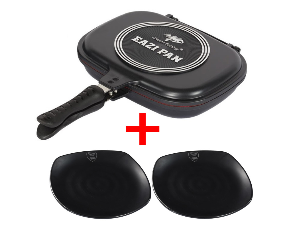 Giants fishing Akční set Pánev na vaření Eazi Medium + 2x Talíř Plate Black Large!