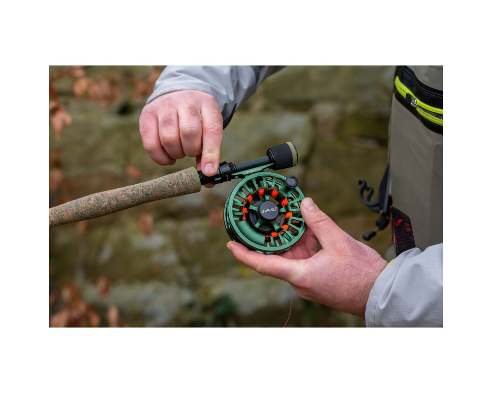 Muškařský prut s jemnější části blanku od středu ke špičce, je výborným a efektivním náčiním, které nám dává tu možnost absolutního kontaktu s úlovkem. Pruty Drift MKIIvám umožní udržet úlovek již na malé či střední vzdálenosti s velmi jemnou prezentací, ať jsou to už samotné suché mušky nebo nymfy, bez strachu, aby nedošlo k samovolnému vypadnutí háčku. Pro Drift ale není ani problém zúčastnit se souboje s velkou rybou v prudkém říčním proudu, kde právě blank je tím správným a konkrétním nástrojem pro úspěch. Blank prutu je v matné zelené barvě. Nová unikátní korková rukojeť s označením P-Cork zaujme svým dojmem, že se jedná o camo vzor, i když tomu doopravdy tak není, a tedy není tak výrazná při zdolávání úlovku. Zkončení je pak v kombinaci s EVA materiálem. Na prutu je také vyznačen bod nejmenší možné počitatelné délky při soutěžích, což je 20 cm, který naleznete nad rukojetí prutu. Prut je osazen očkami s označením Pac Bay,CNC hliníkovým sedlem pro naviják. Specifikace: - nereflektující blank v matném zeleném provedení - HMTC multi modulovaný uhlíkový blank Toray 24/30T se střední akcí - CNC anodisované hliníkové sedlo pro naviják - blank s logem DRIFT - počet dílů: 4 - nově použitý P-Cork korková rukojeť v kombinaci s EVA materiálem - jednotlivé sekce označeny naváděcími body pro správné sesazení dílů - včetně pevného Cordura pouzdra pro bezpečný transport - barva blanku: tmavě zelená - délka prutu: 7ft (214 m) - AFTMA: 3
